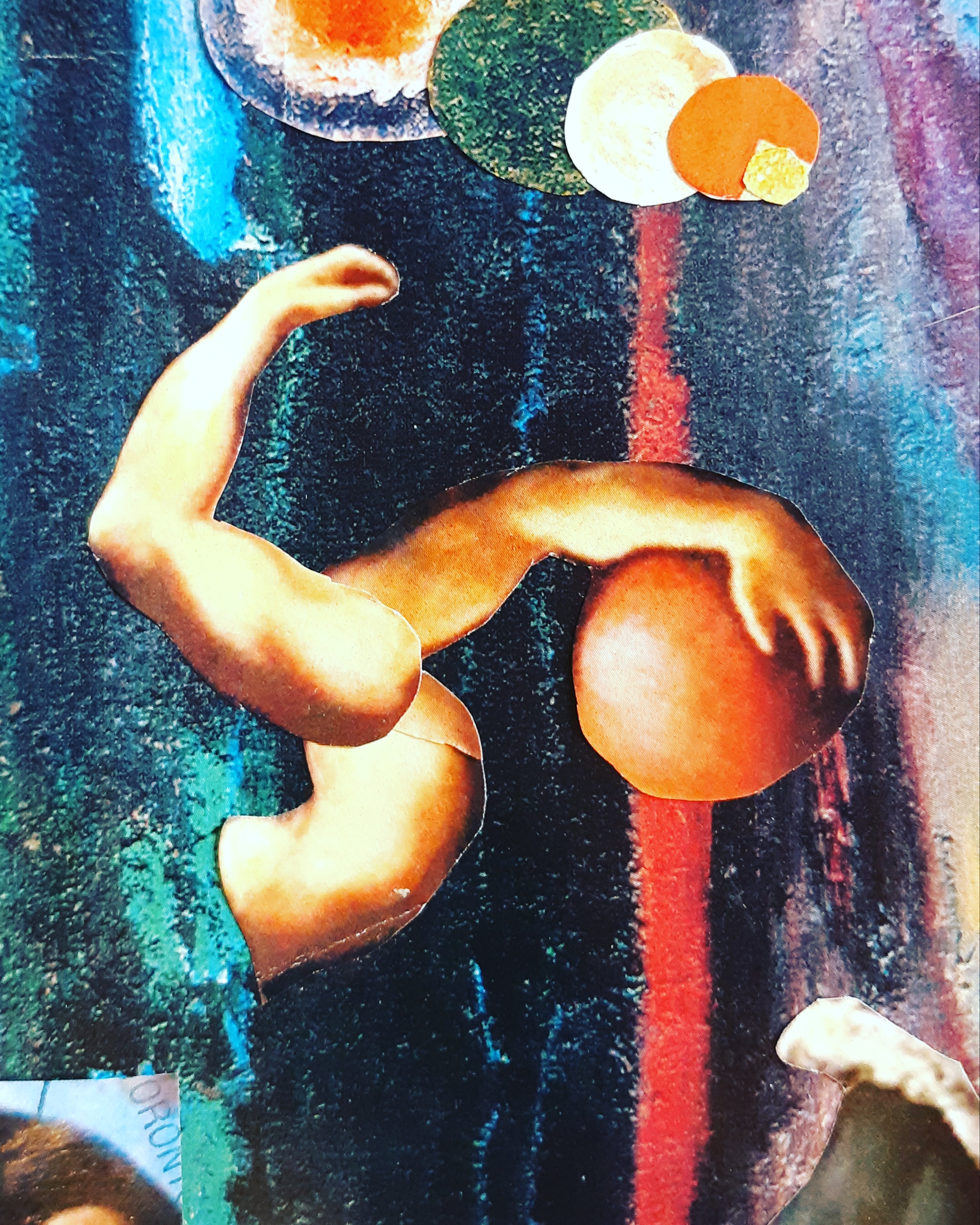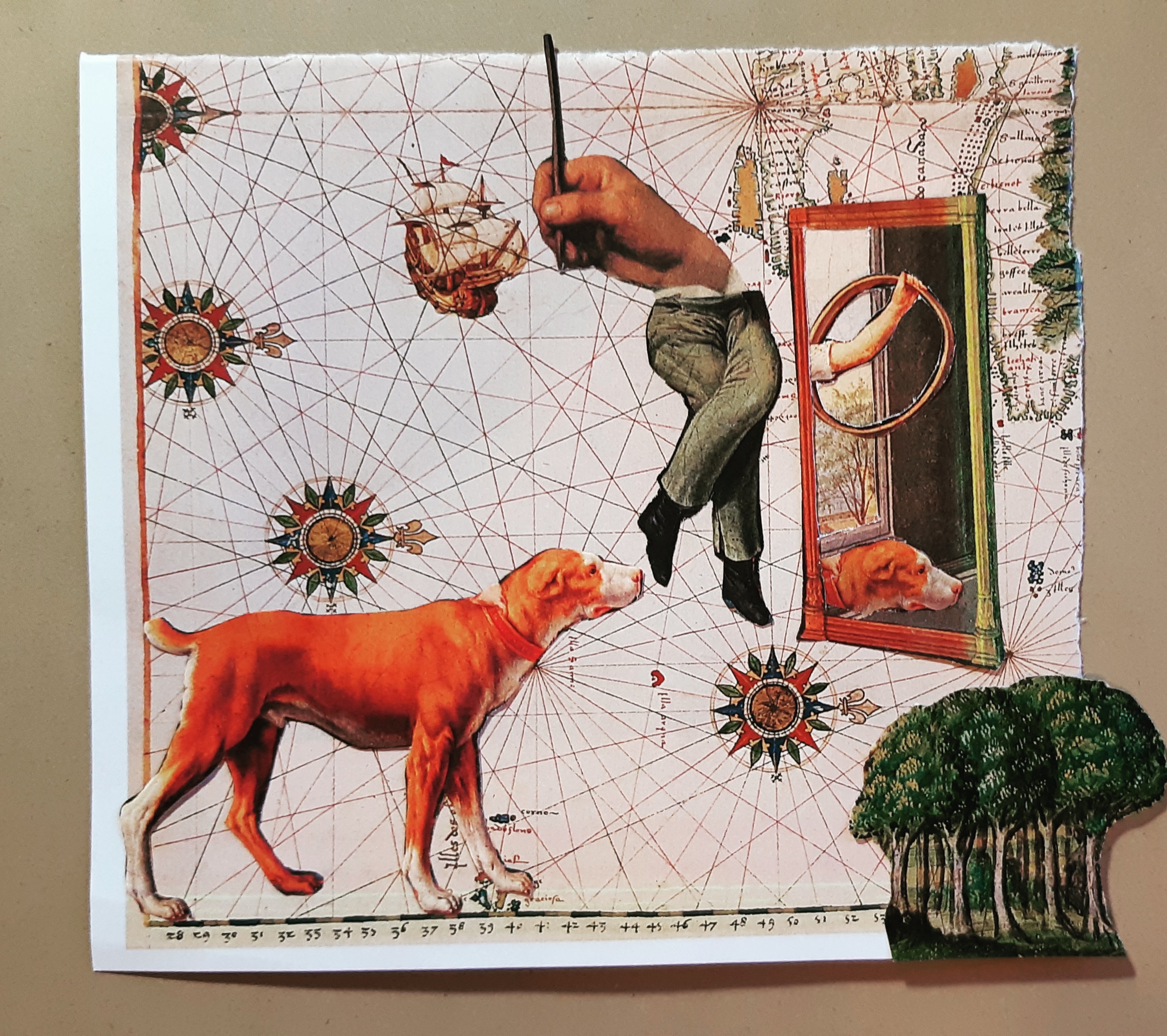 Participating in the online Collage Workshops at Gallery Arcturus has been a wonderful way to connect together until we can gather in person again. Wonderful images arrive bi-weekly and challenge us to collage in an entirely different way. By paying close attention to the original art of the Masters we dissect the images and rearrange the pieces in a new way. This wonderful concept has helped me to grow by entering new world’s previously undiscovered. It has been very satisfying way to work together while apart.